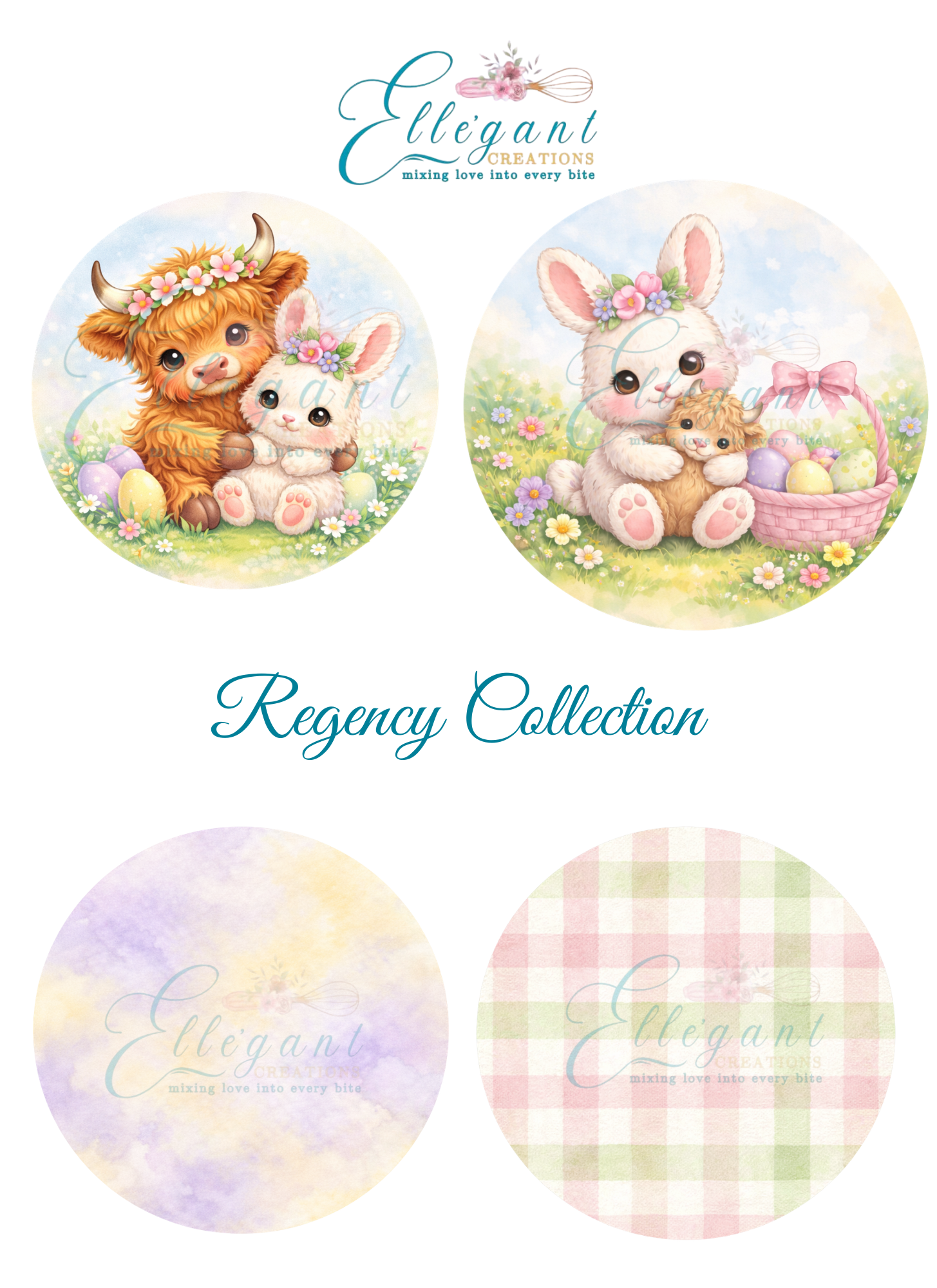 Food-safe Easter Collection images for a fun, festive dessert finish.