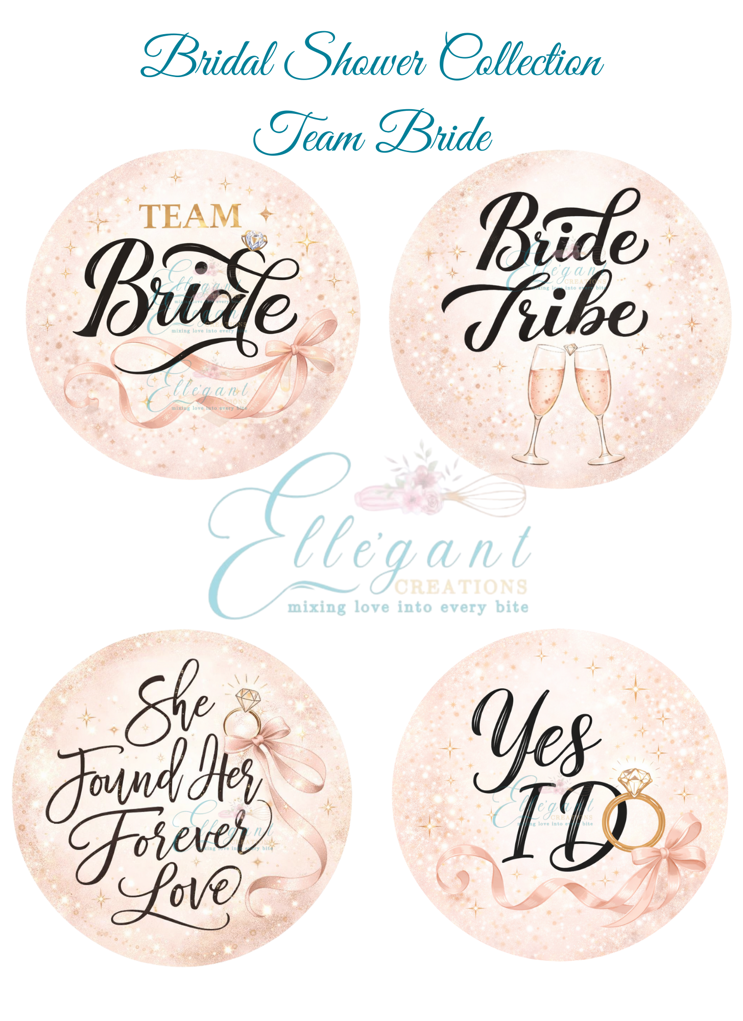 Bridal Shower Collection edible icing images designed for Cuddle Cakes, s’mores bars, candy bars, and specialty desserts. These ready-to-use icing images add a polished, boutique finish for your special day.